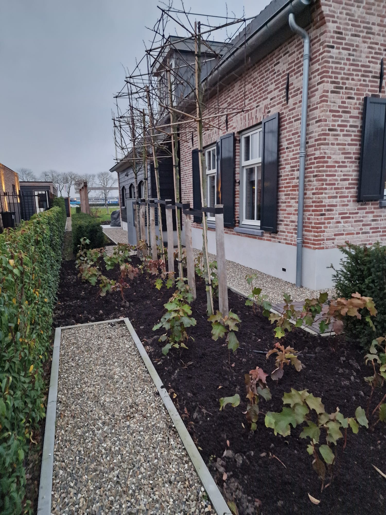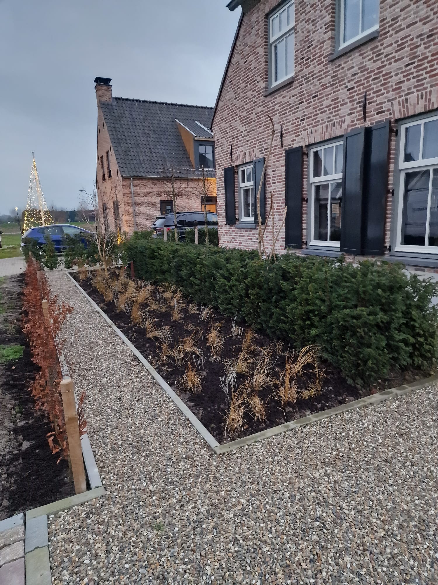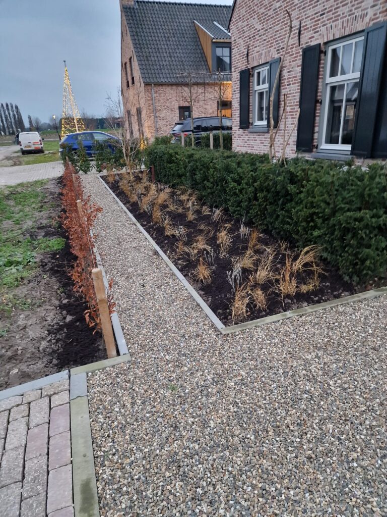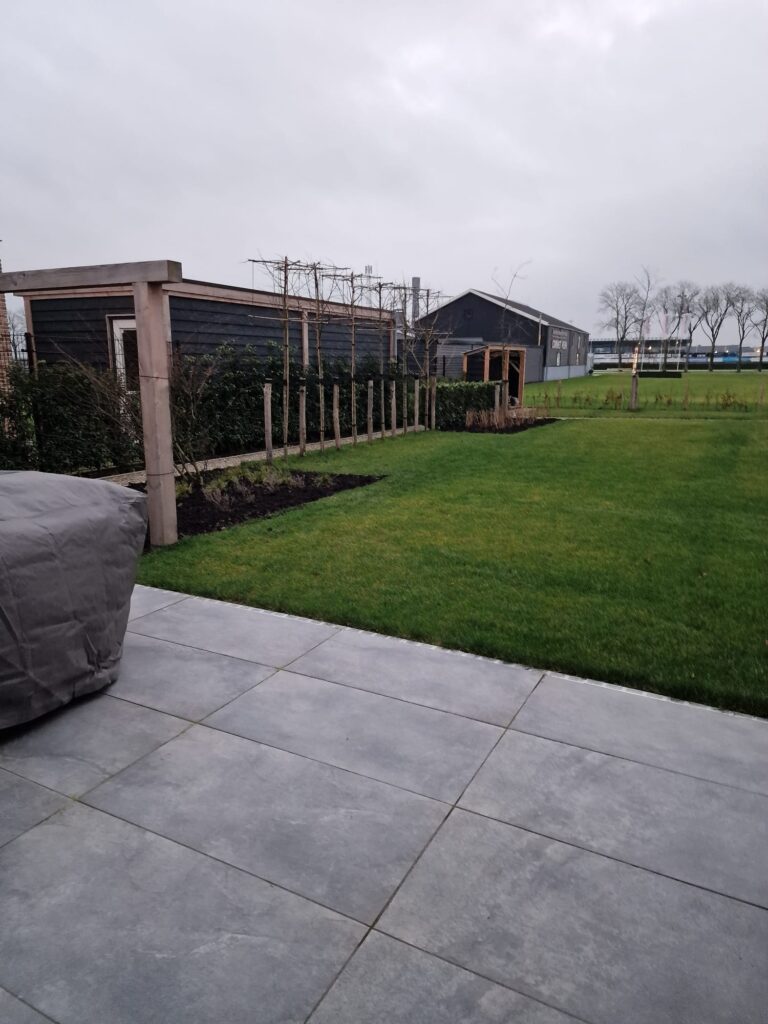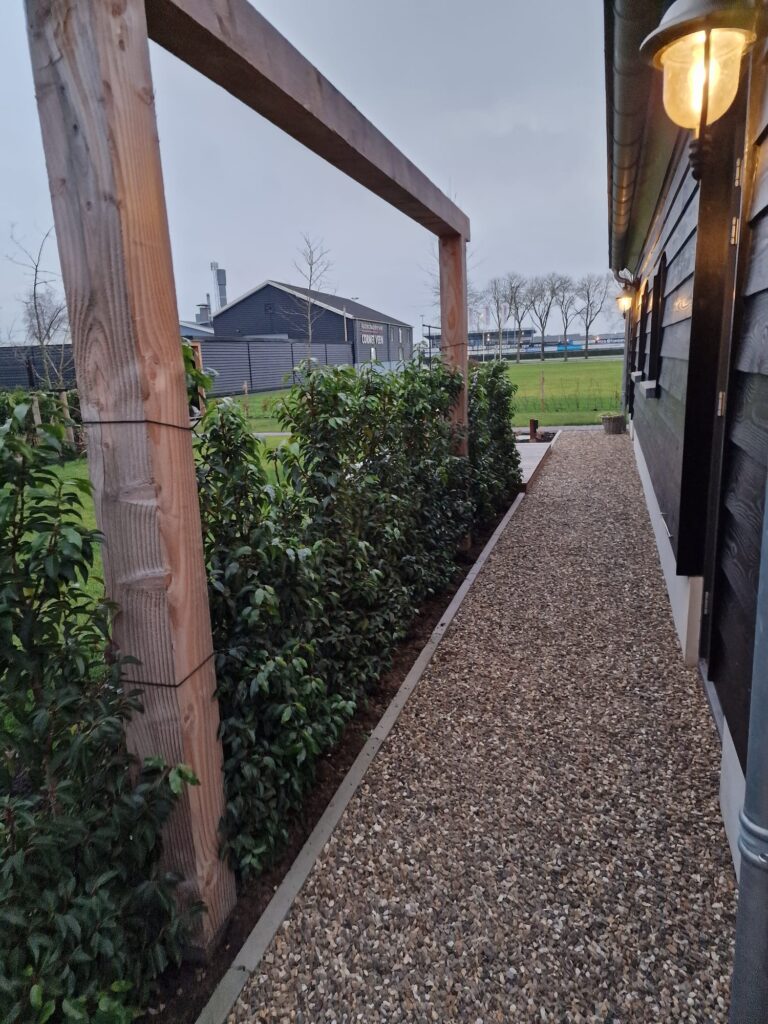We hebben onlangs deze prachtige tuin opgeleverd. Het is een moderne en speelse tuin die verschillende elementen combineert, zoals een pergola, een vlonder en diverse soorten straatwerk. Deze tuin blijft het hele jaar door groen, zowel in de zomer als in de winter.